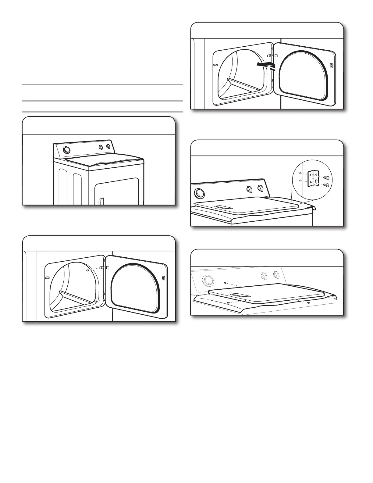 side of hinges. Loosen (do not remove) top screws from dryer