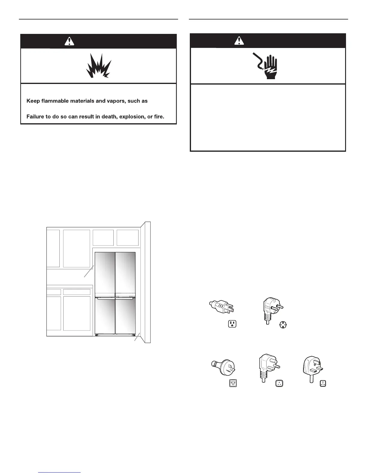 When installing your refrigerator next to a xed wall, leave a 9.5