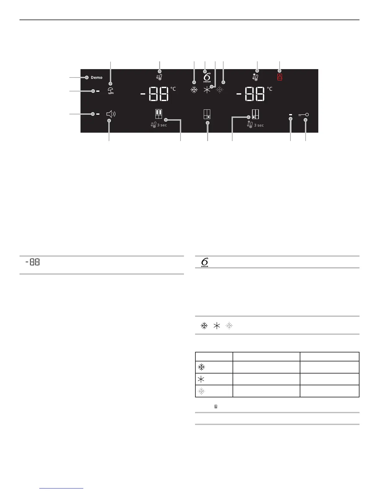 bilgiler içerir. Soğutucu ve dondurucu bölme sıcaklığı göstergeleri, son sıcaklık ayar noktasını gösterir.
