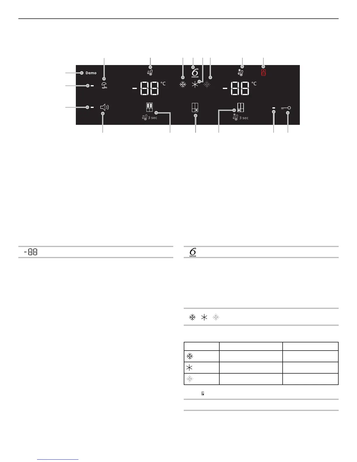 indikatorer. Indikatorerna för kyl- och frystemperatur visar de senaste temperaturbörvärdena.