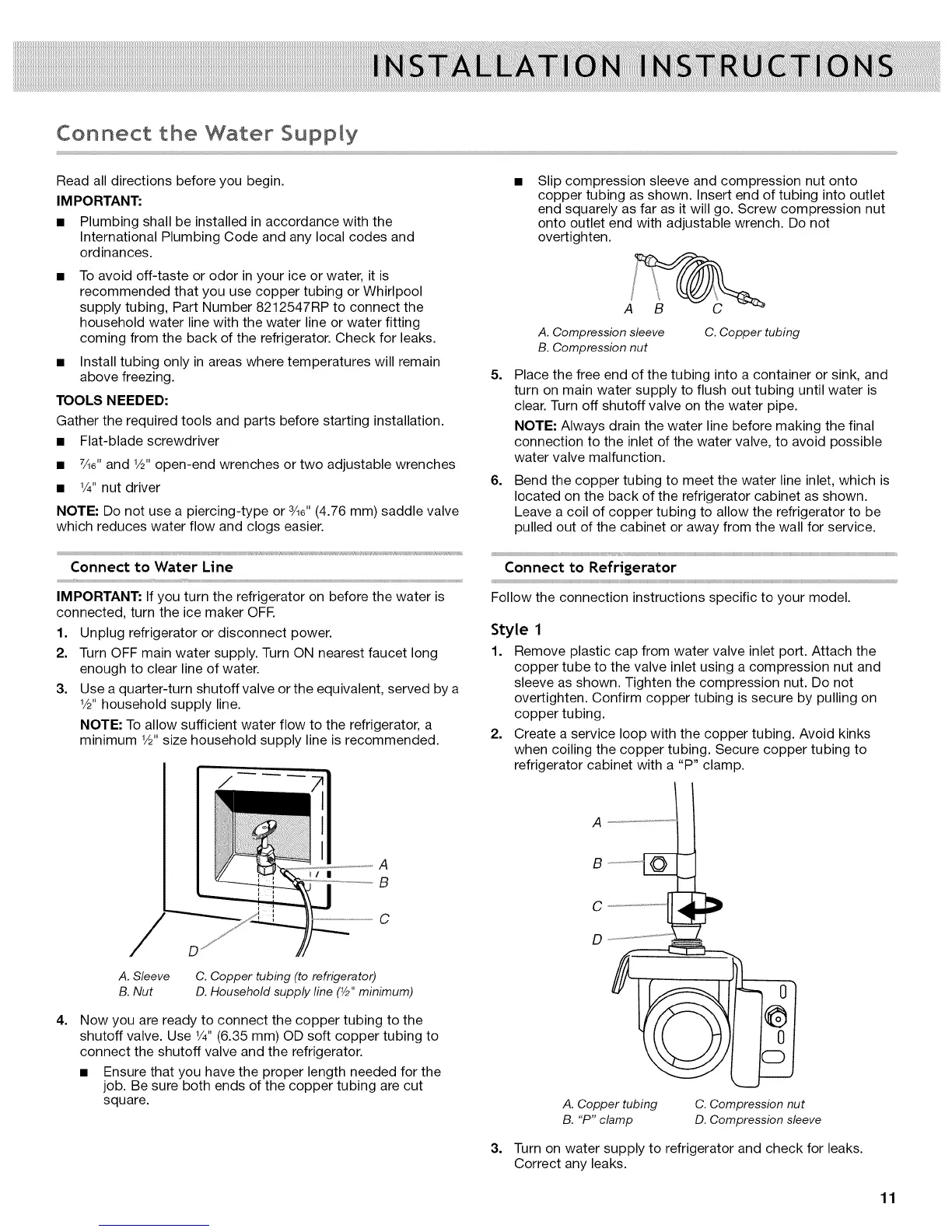 shutoff valve. Use 1/4"(6.35 mm) OD soft copper tubing to