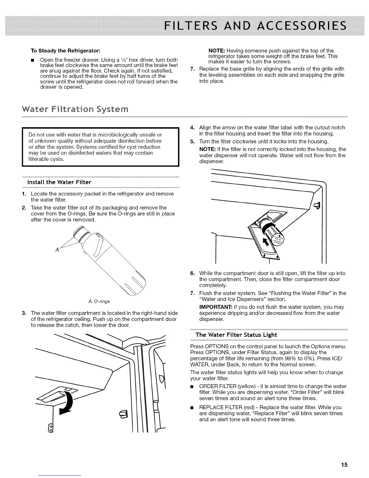 • ORDER FILTER (yellow) - itis almost time to change the water