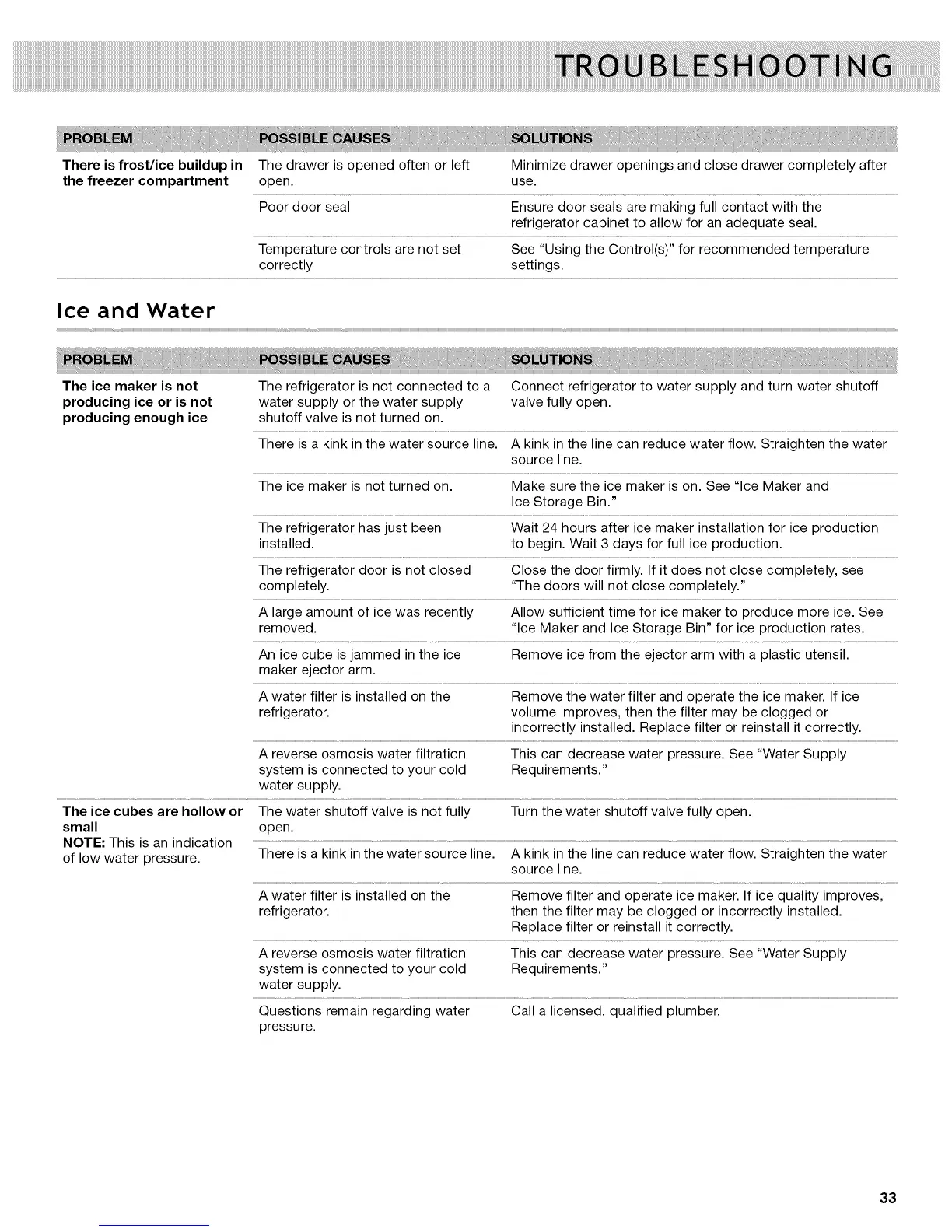 producing ice or is not water supply or the water supply valve fully open.