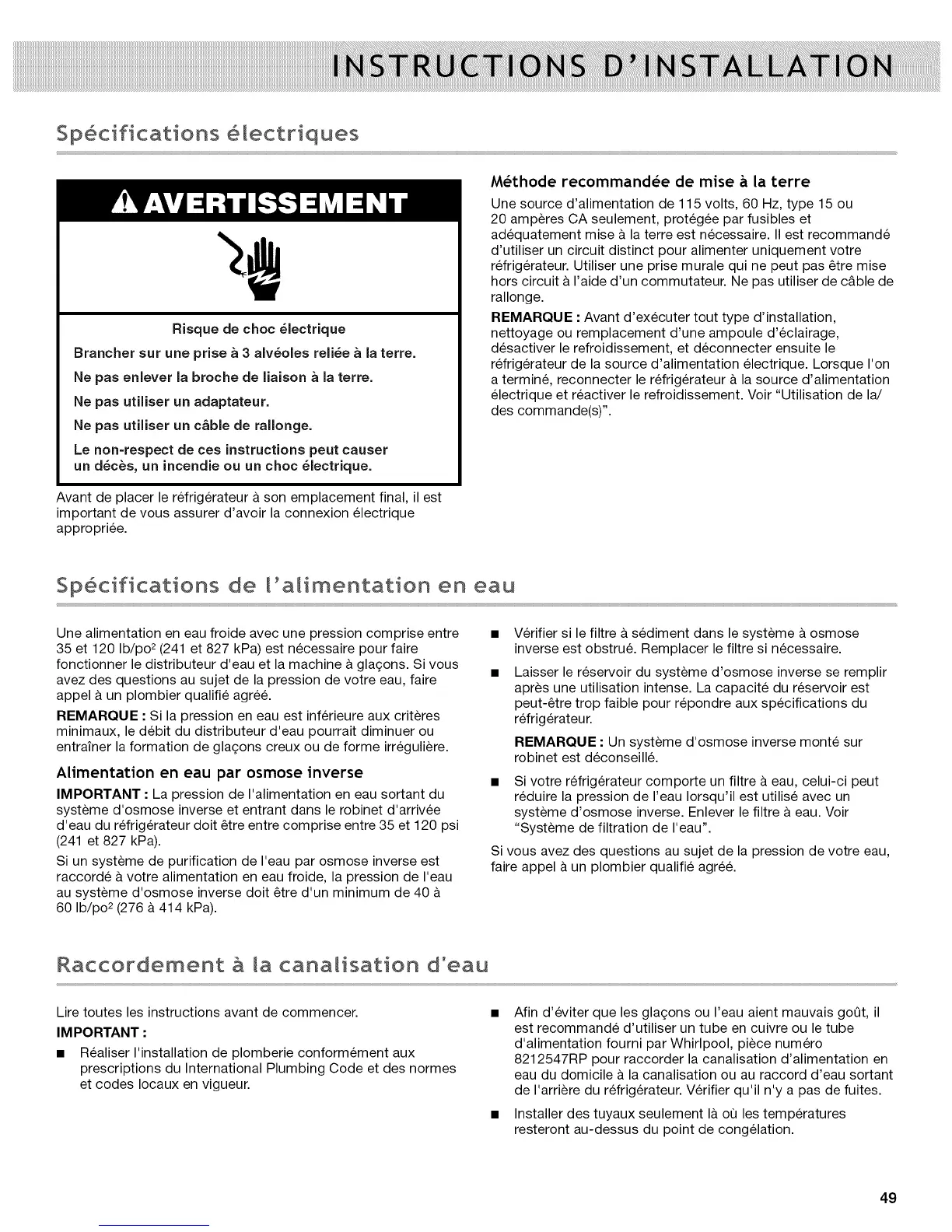 d'eau du refrigerateur doit &tre entre comprise entre 35 et 120 psi