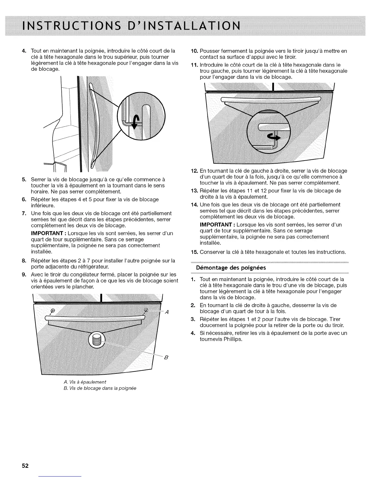 15. Conserver la cle a t_te hexagonale et toutes les instructions.