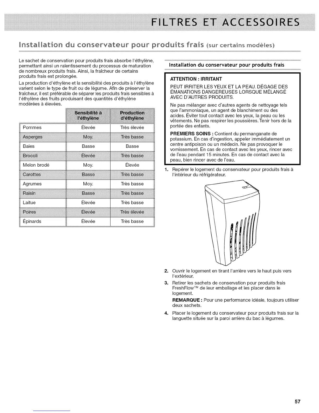fraicheur, il est pref6rable de separer les produits frais sensibles