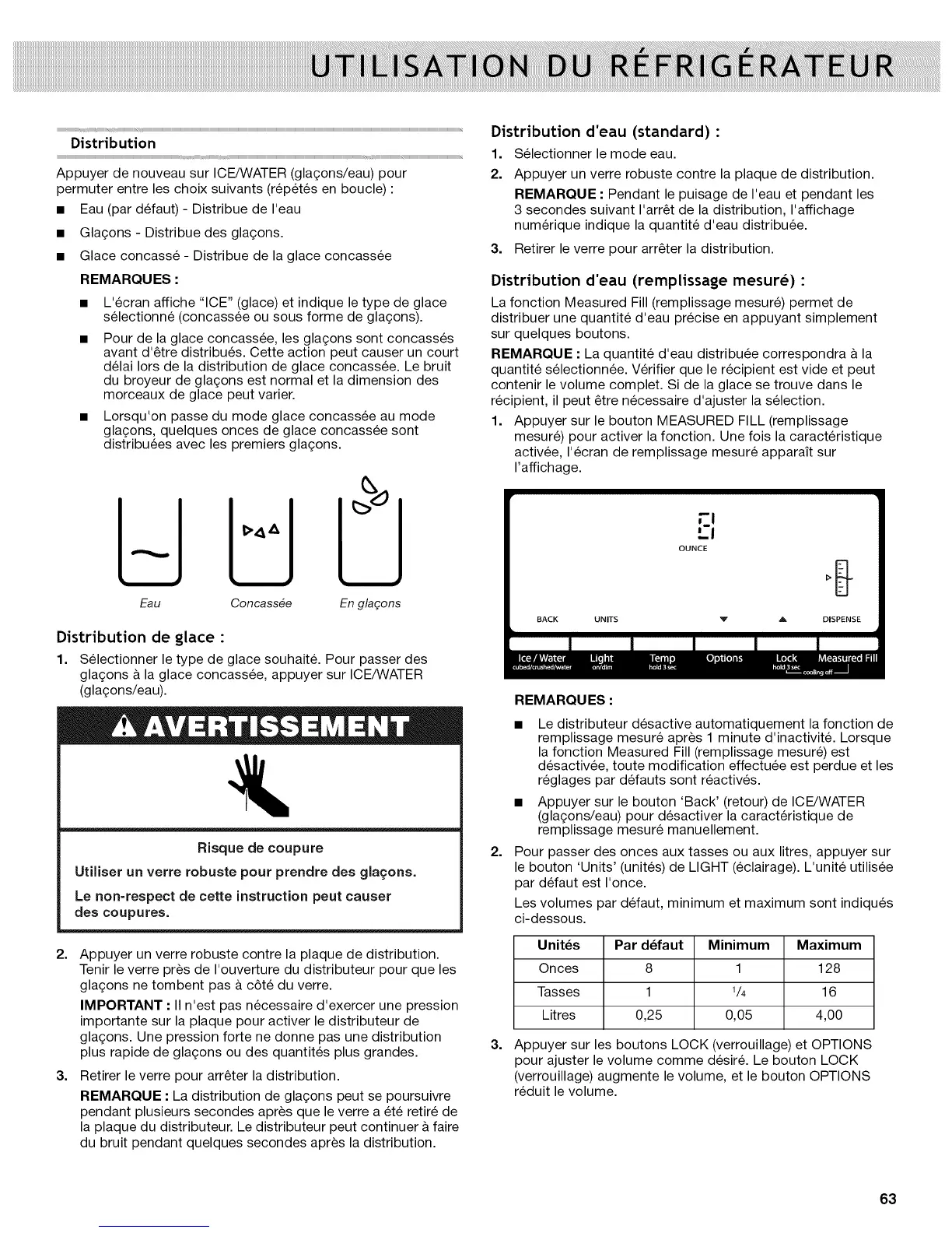 REMARQUE : La distribution de gla£;ons peut se poursuivre