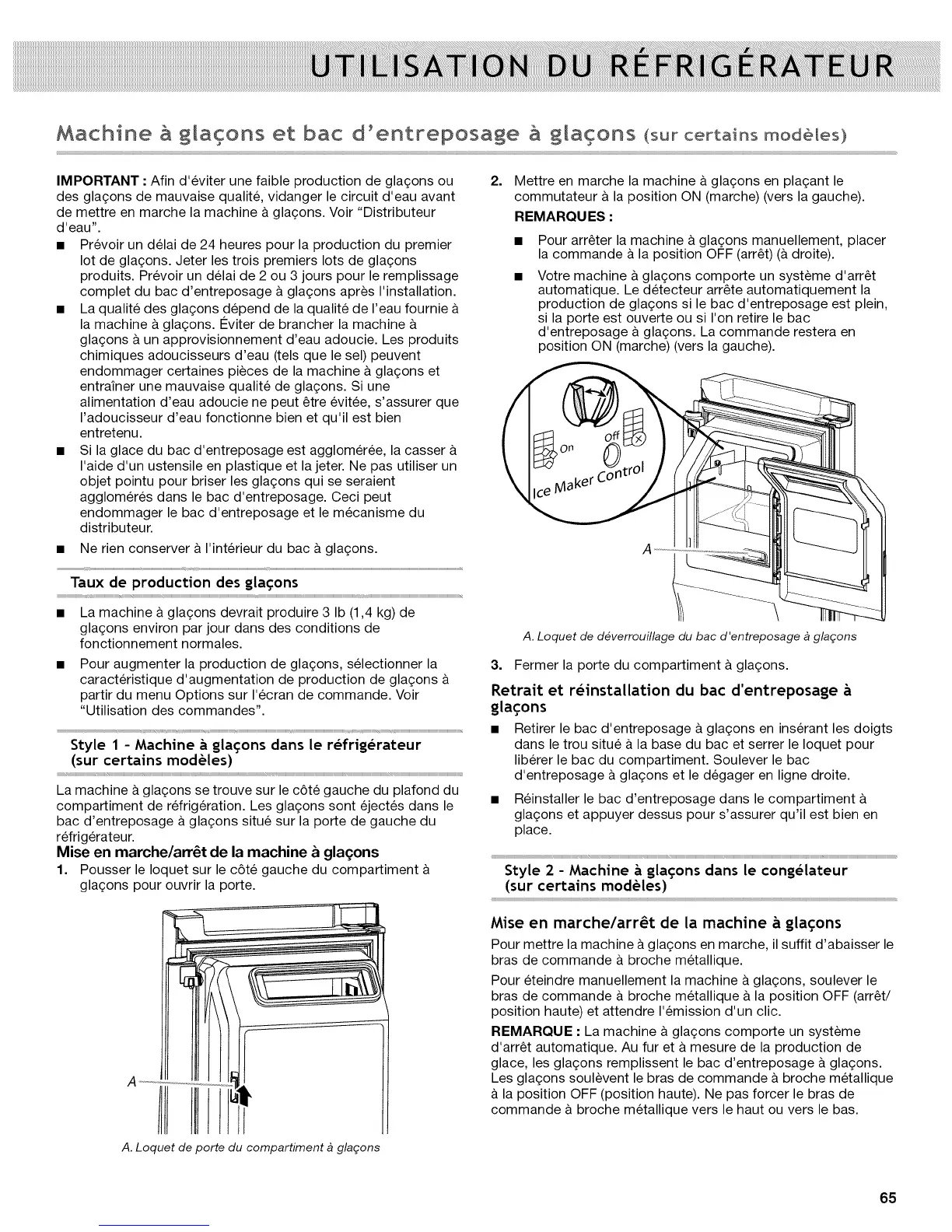 compartiment de refrigeration. Les glagons sont ejectes dans le