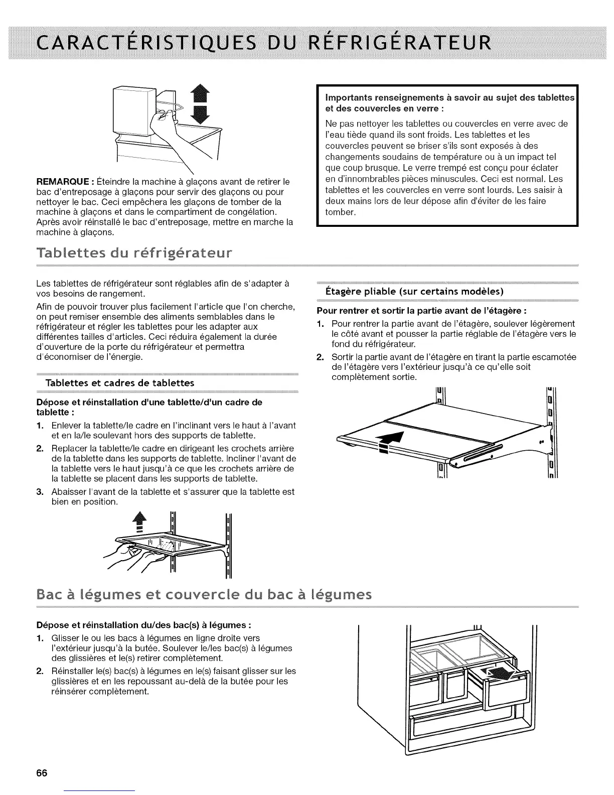 tablettes et les couvercles en verre sont Iourds. Les saisir