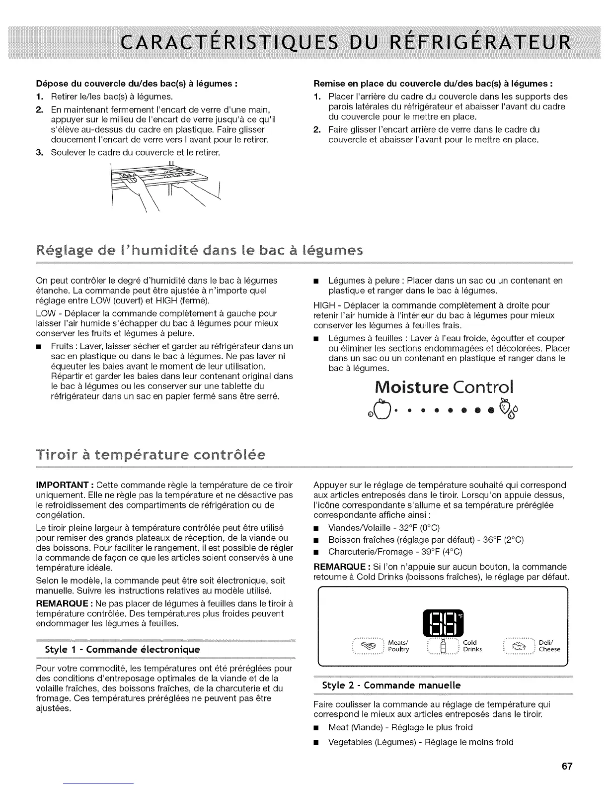 On peut contr61er le degre d'humidite dans le bac & legumes
