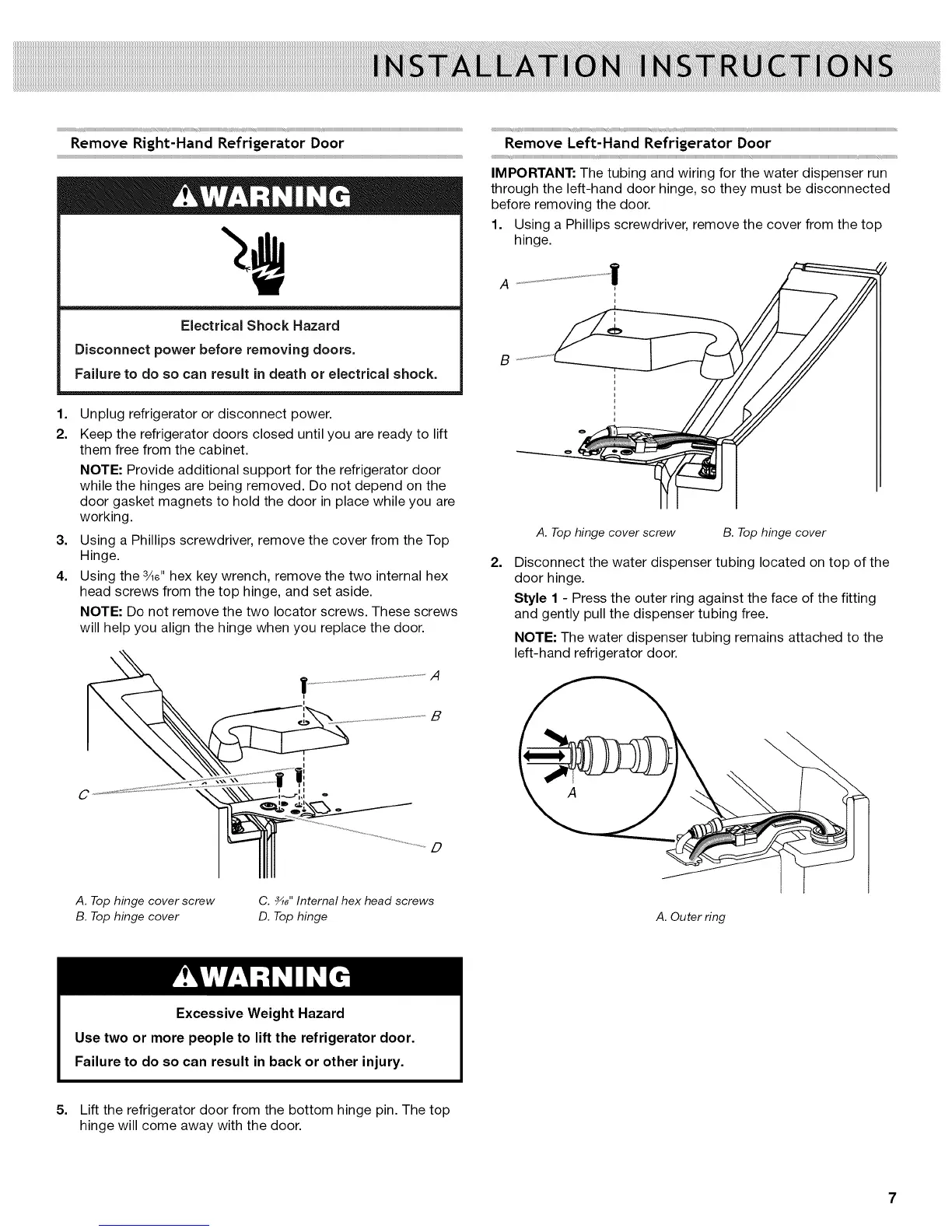 IMPORTANT: The tubing and wiring for the water dispenser run