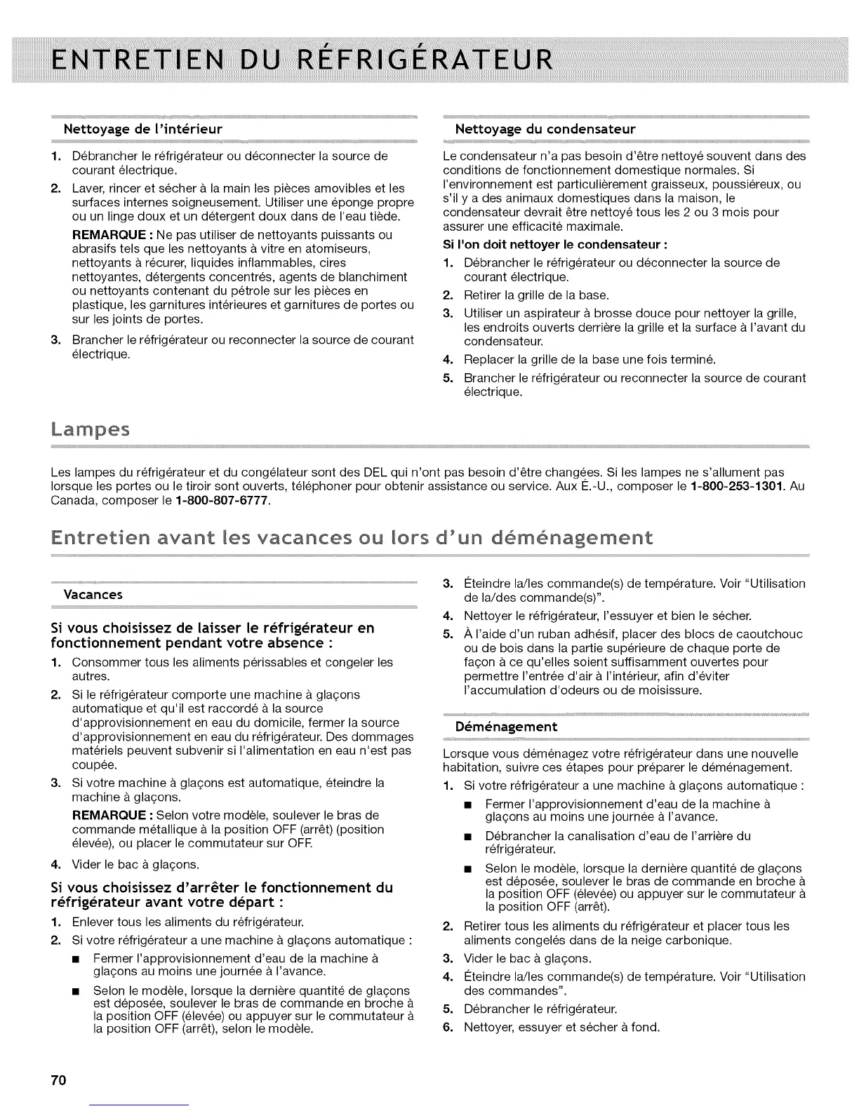 Les lampes du refrigerateur et du congelateur sont des DEL qui n'ont pas besoin d'etre changees. Si les lampes ne s'allument pas