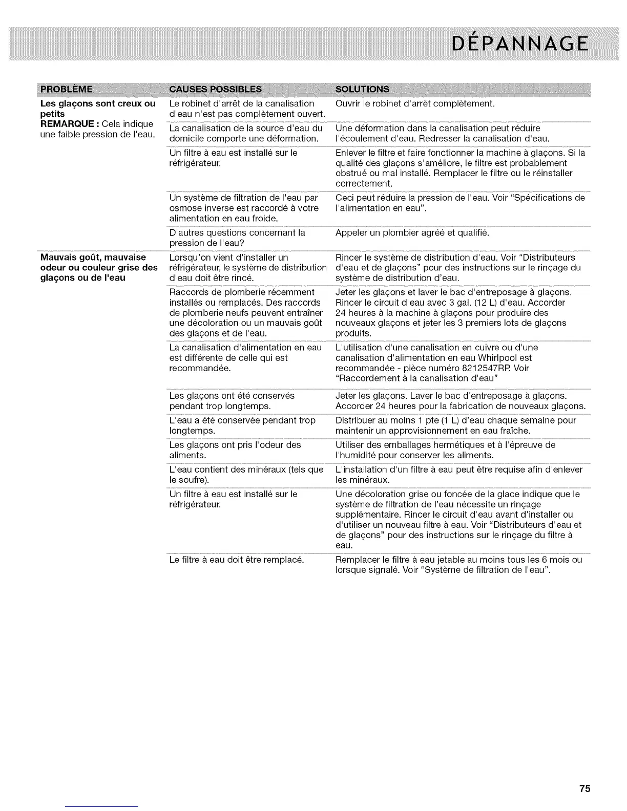 odeur ou couleur grise des refrig6rateur, le systeme de distribution d'eau et de glagons" pour des instructions sur le ringage du