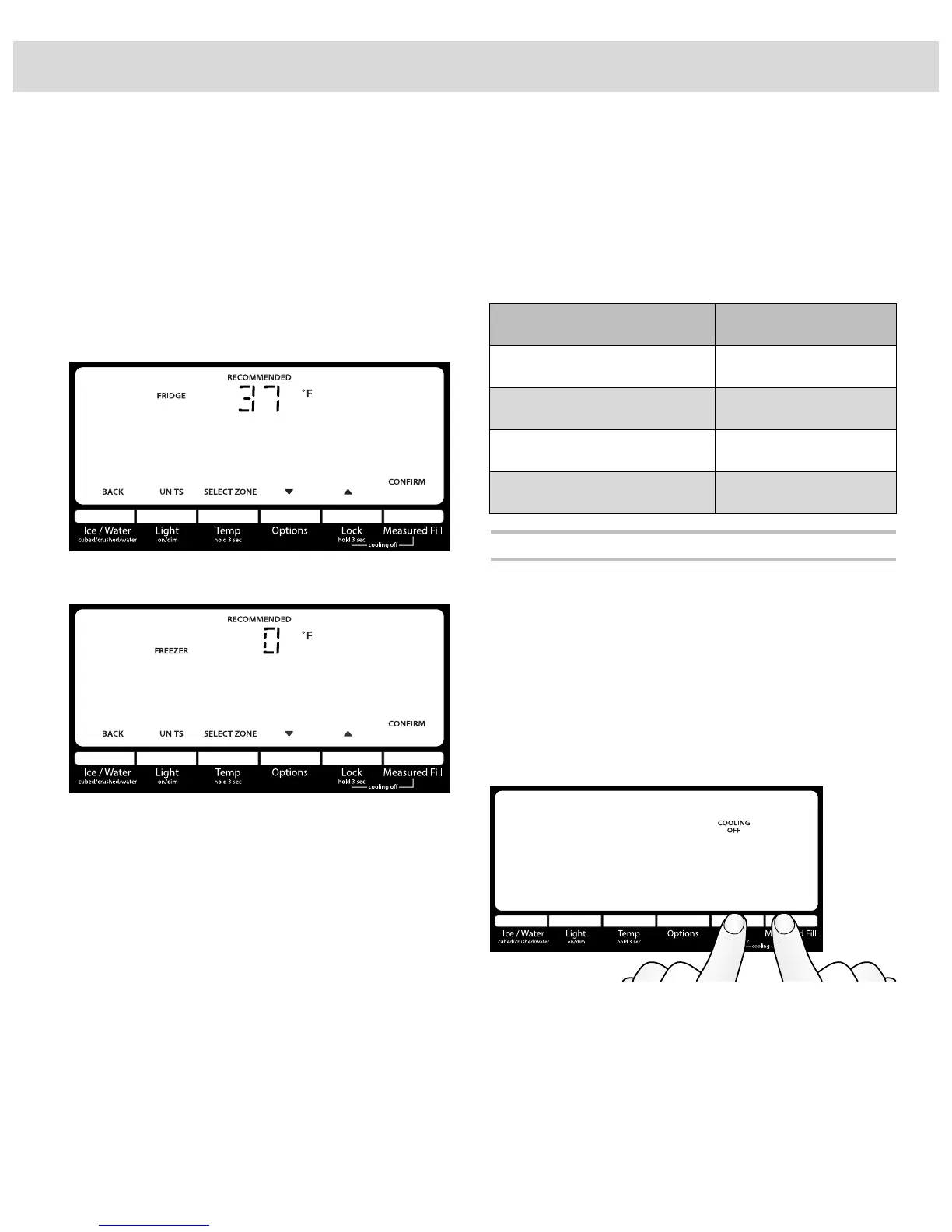 ■ To turn cooling off, press and hold the LOCK and