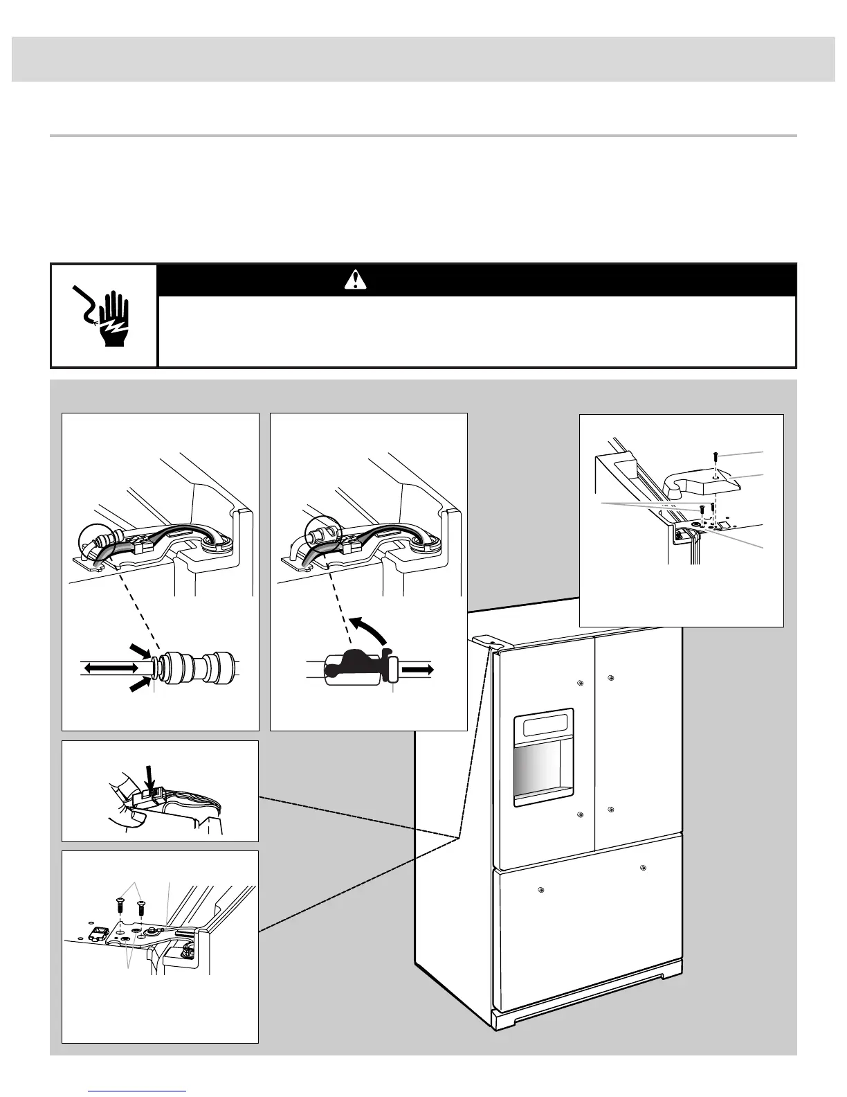 courant électrique. Retirer les aliments et tout balconnet de porte (utilitaire ou réglable) du réfrigérateur.