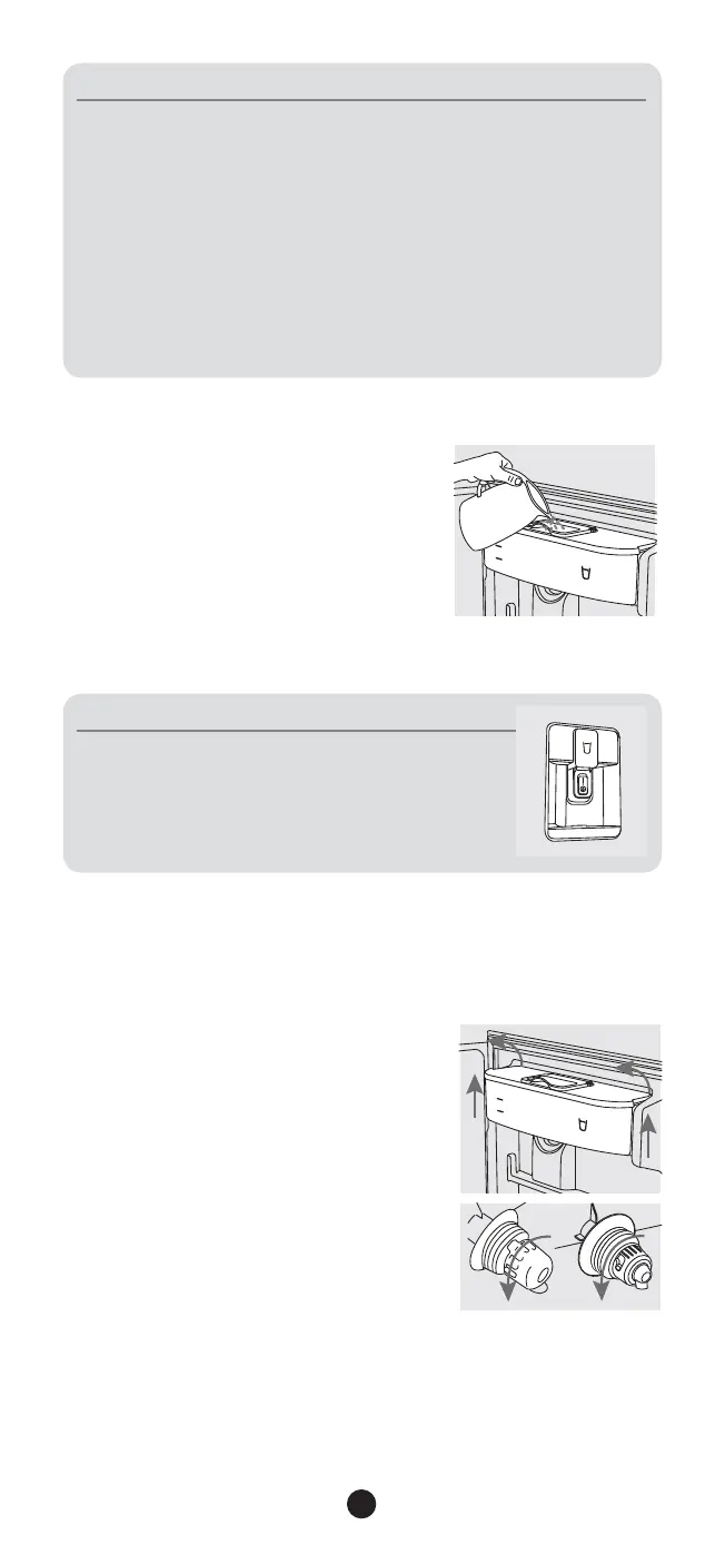 Do not use rough fi bers to clean the water storage tank as this will damage