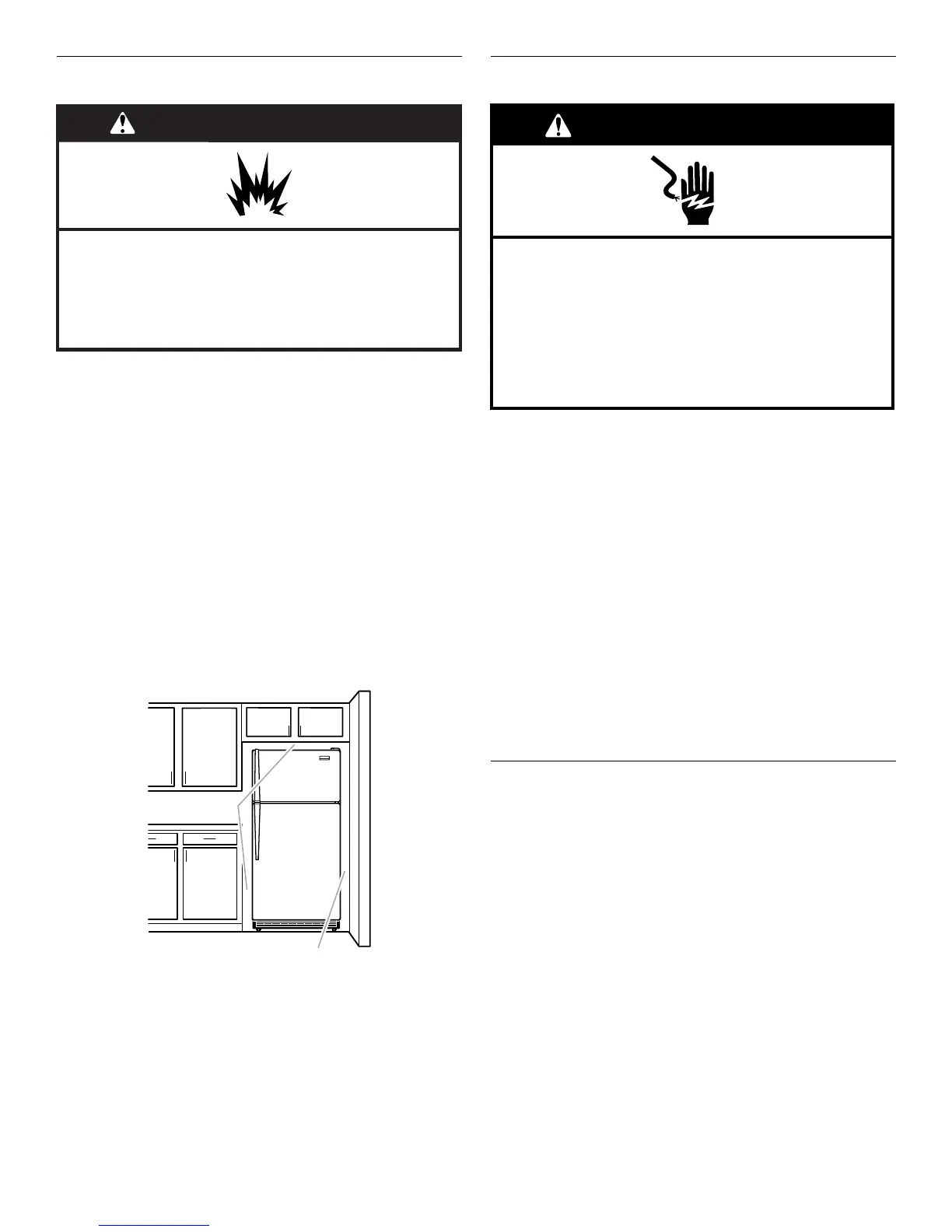 réfrigérateur près d’un mur fixe, laisser un minimum de 2"