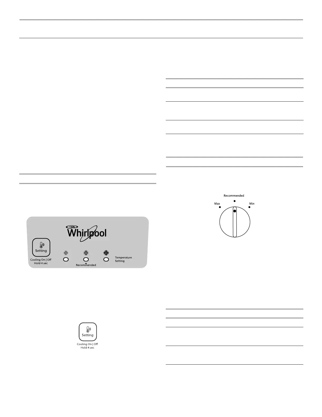 de réfrigération ou de congélation, utiliser les réglages indiqués