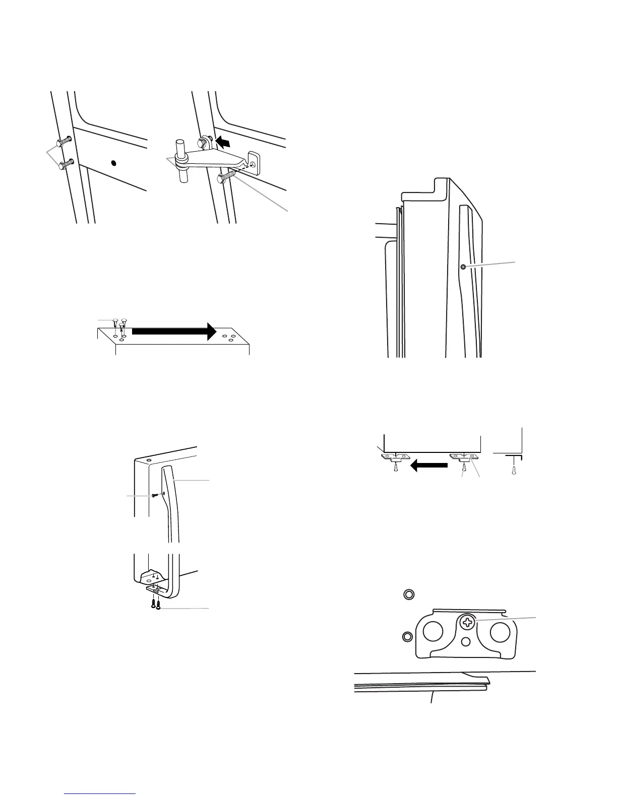 3. Deslice la bisagra central de la derecha sobre los tornillos,