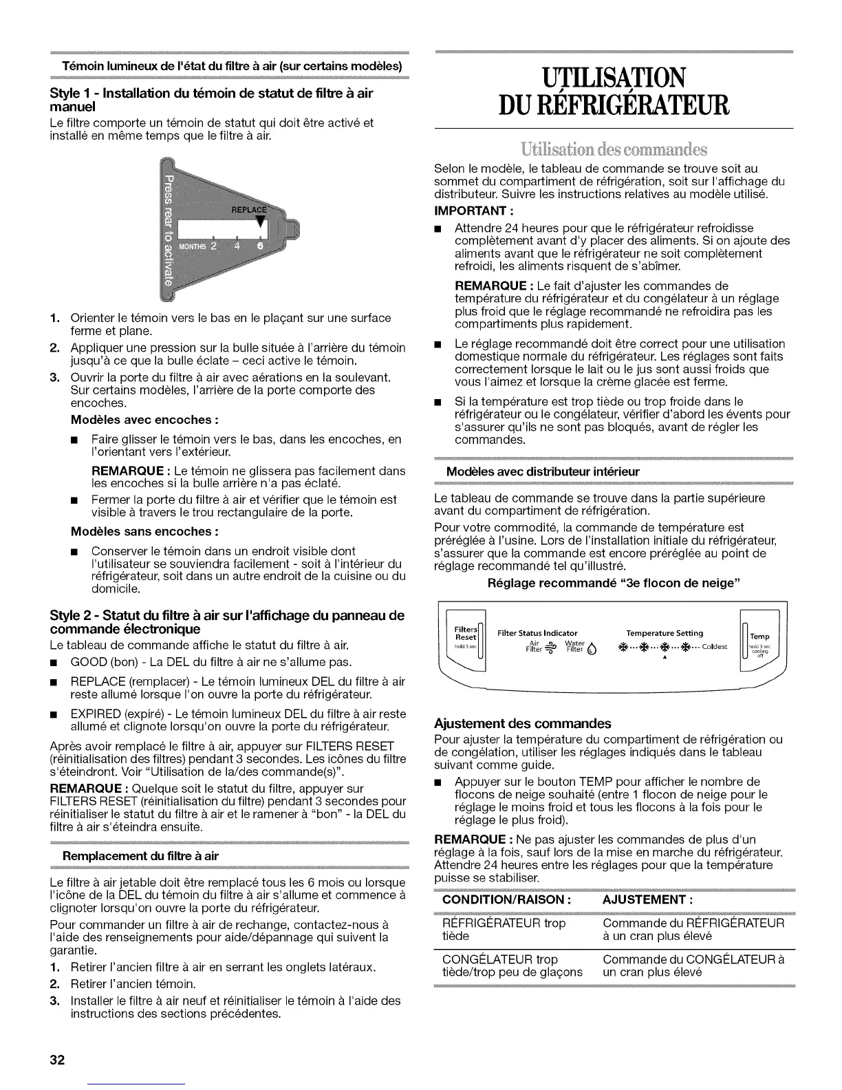 • REPLACE (remplacer) - Le temoin lumineux DEL du filtre h air