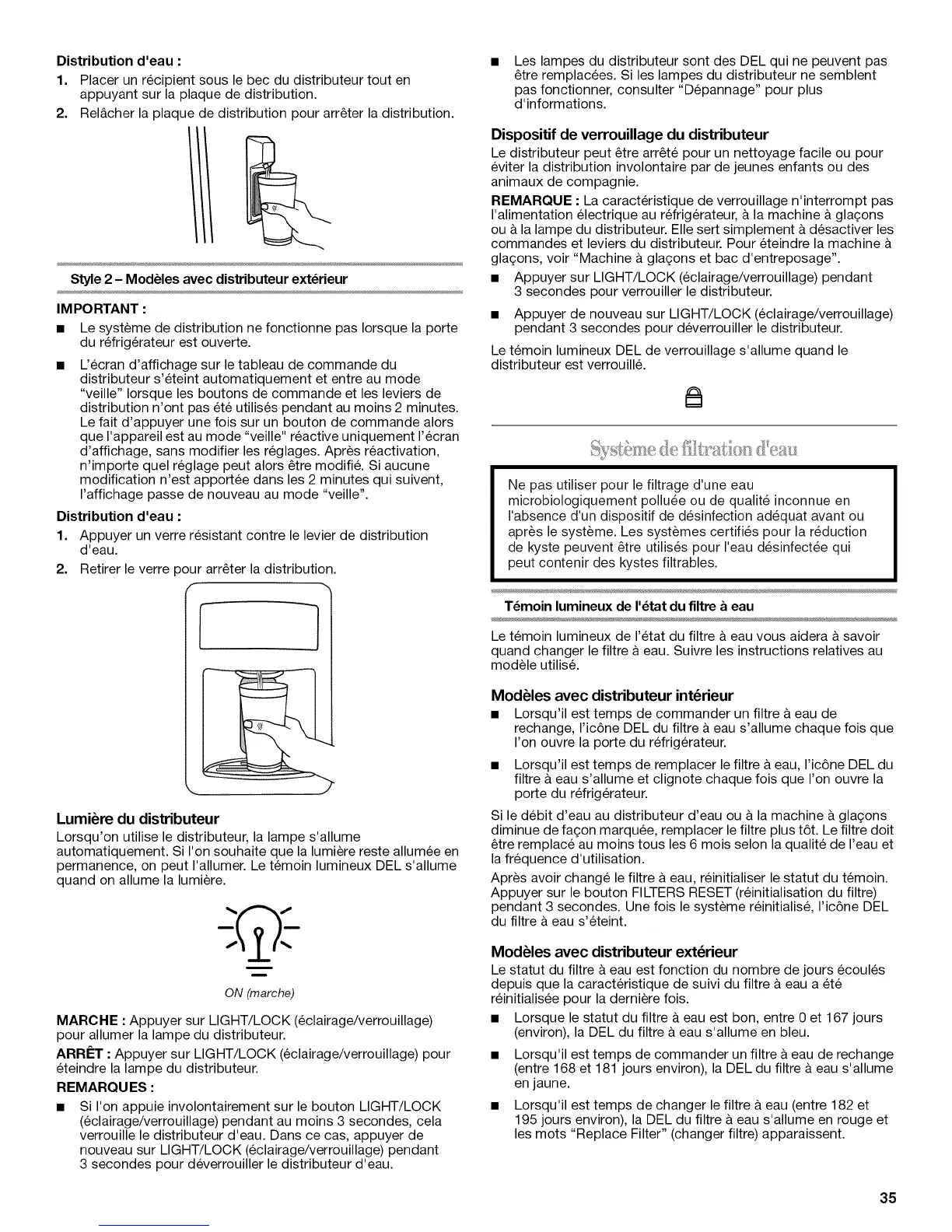 rechange, I'ic6ne DEL du filtre & eau s'allume chaque fois que
