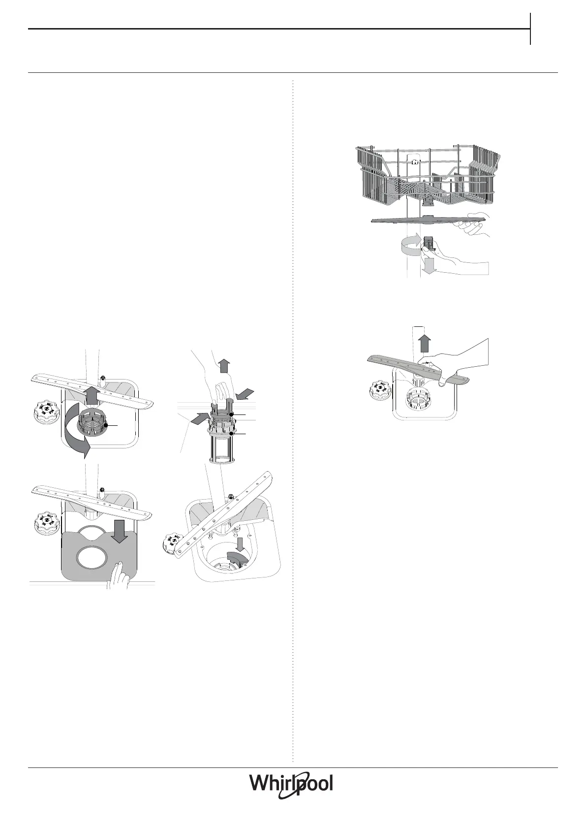 Pentru a demonta braţul de pulverizare superior, rotiţi inelul de xare din