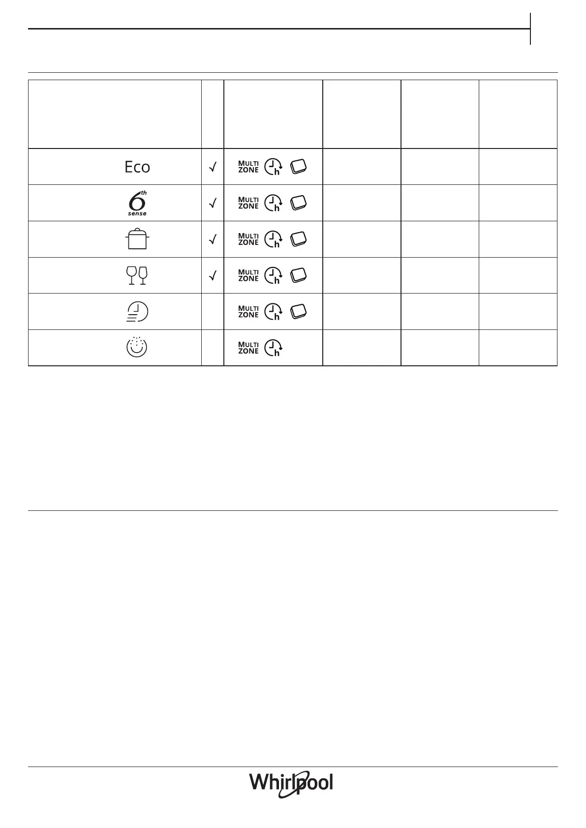**) Values given for programs other than the program Eco are indicative only. The actual time may vary depending on many factors such as temperature
