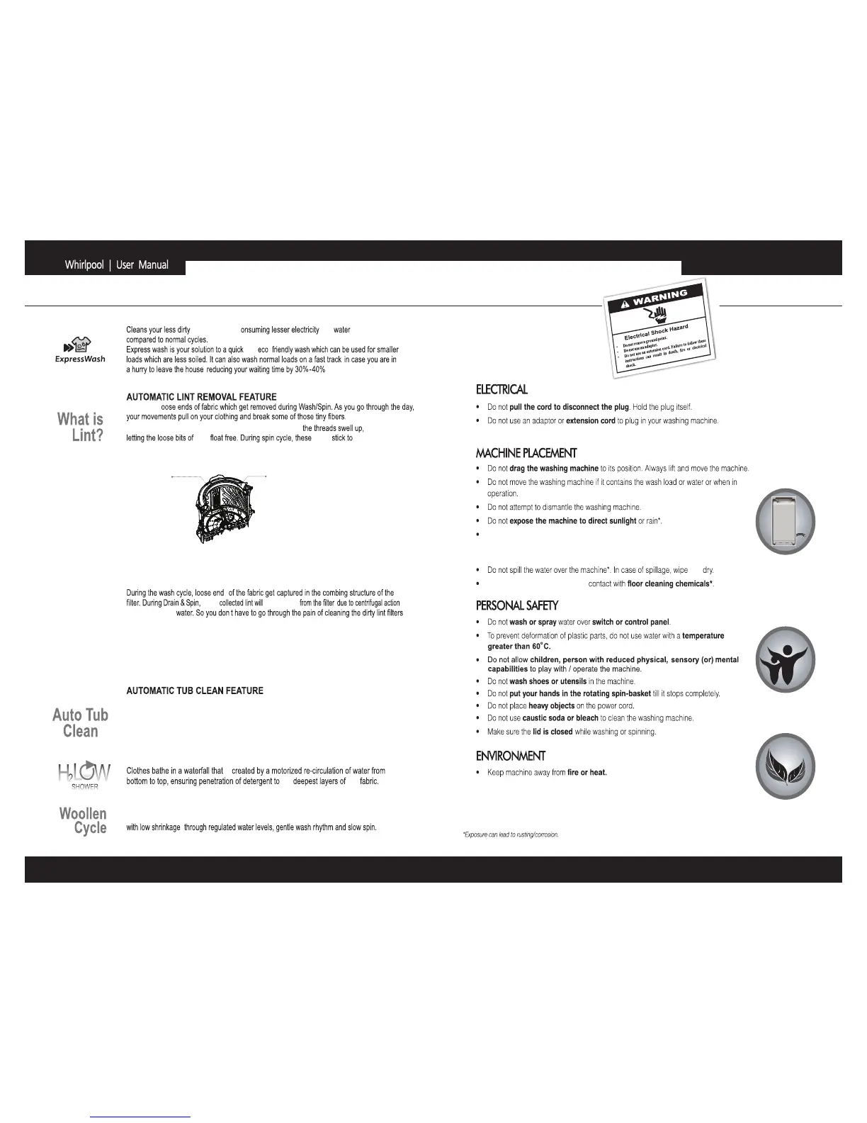 Lint Filter, pouring lint free water onto the clothes. This washer comes with a unique pumping