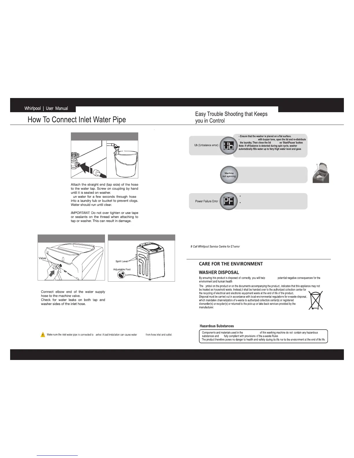Ensure that you have checked the above points before calling the Whirlpool Service Centre.