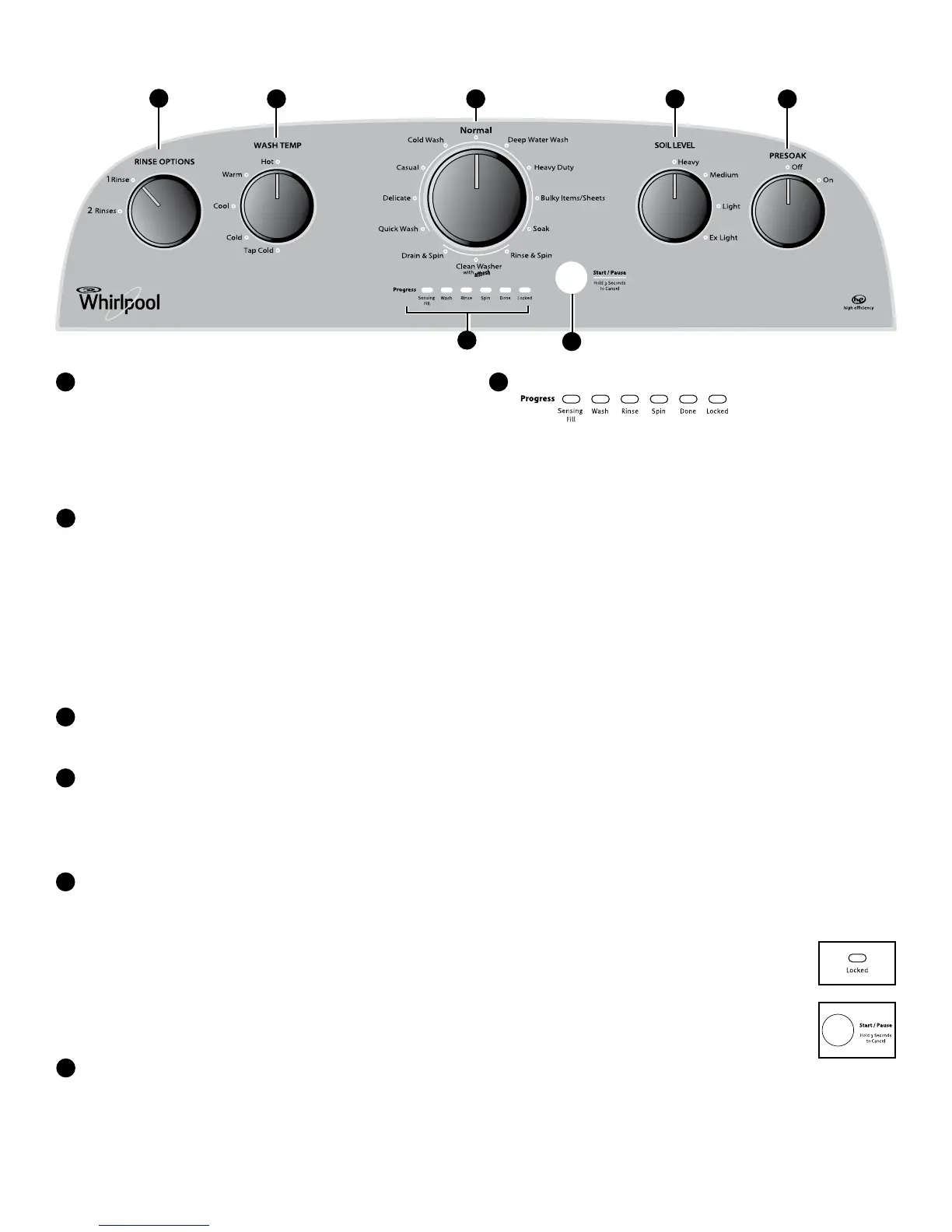 Pause button to pause the cycle for soaking/presoaking. To