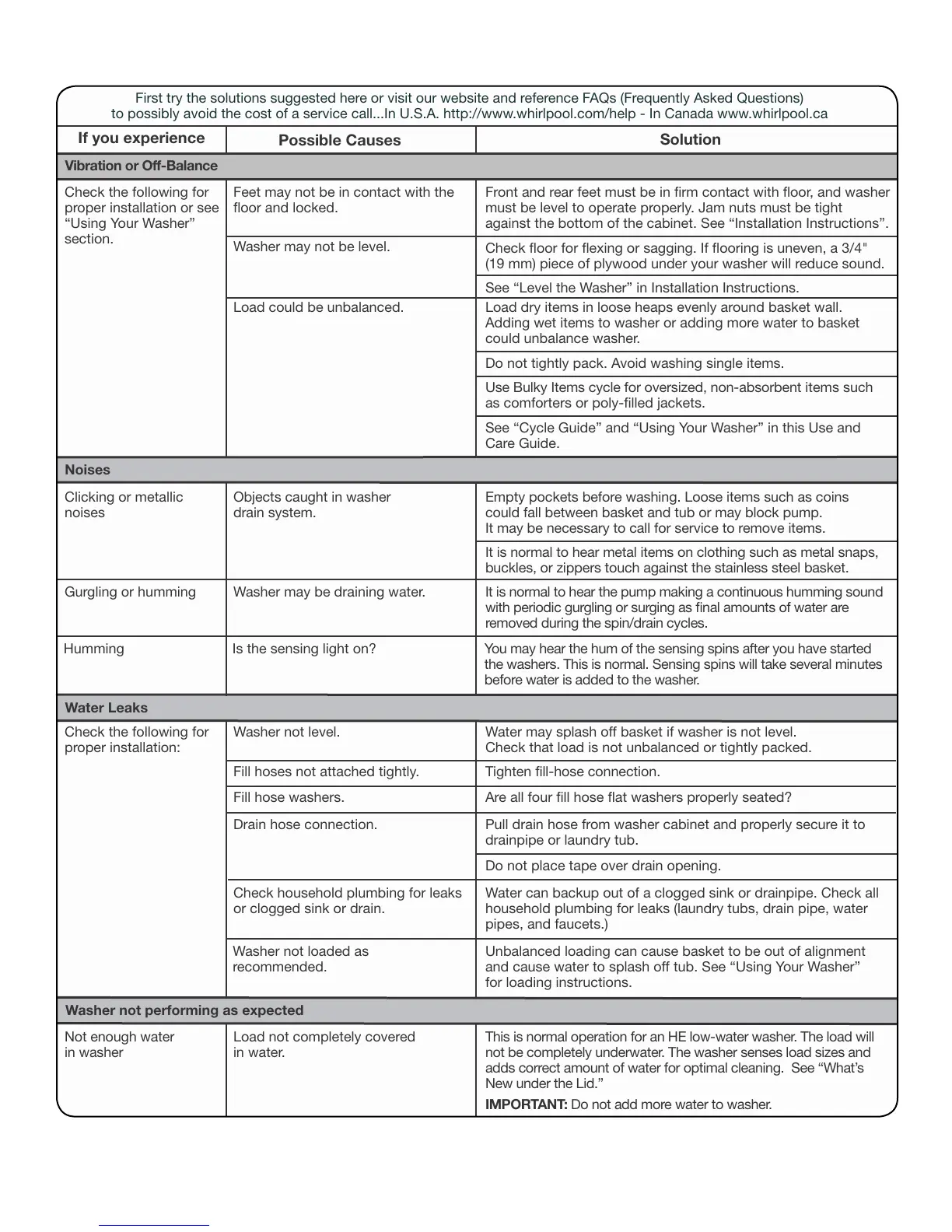 to possibly avoid the cost of a service call...In U.S.A. http://www.whirlpool.com/help - In Canada www.whirlpool.ca