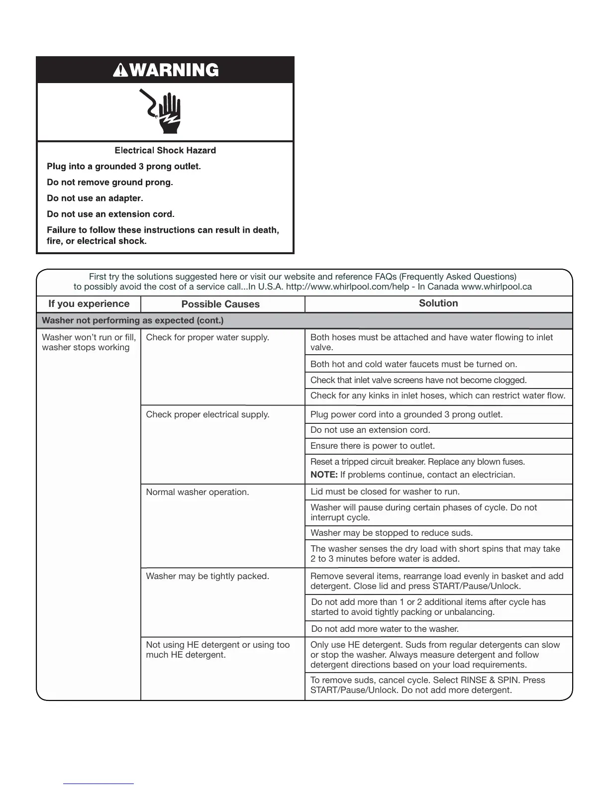 Washer not performing as expected (cont.)