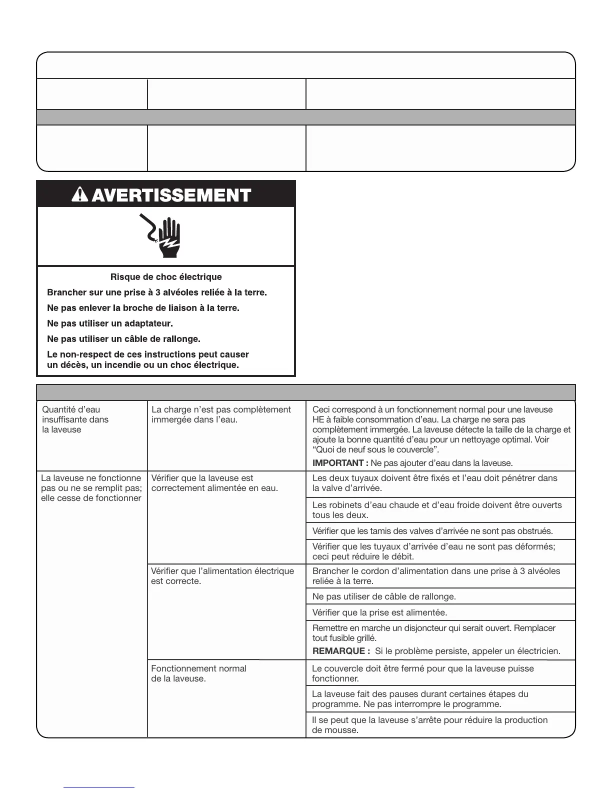IMPORTANT : Ne pas ajouter d’eau dans la laveuse.