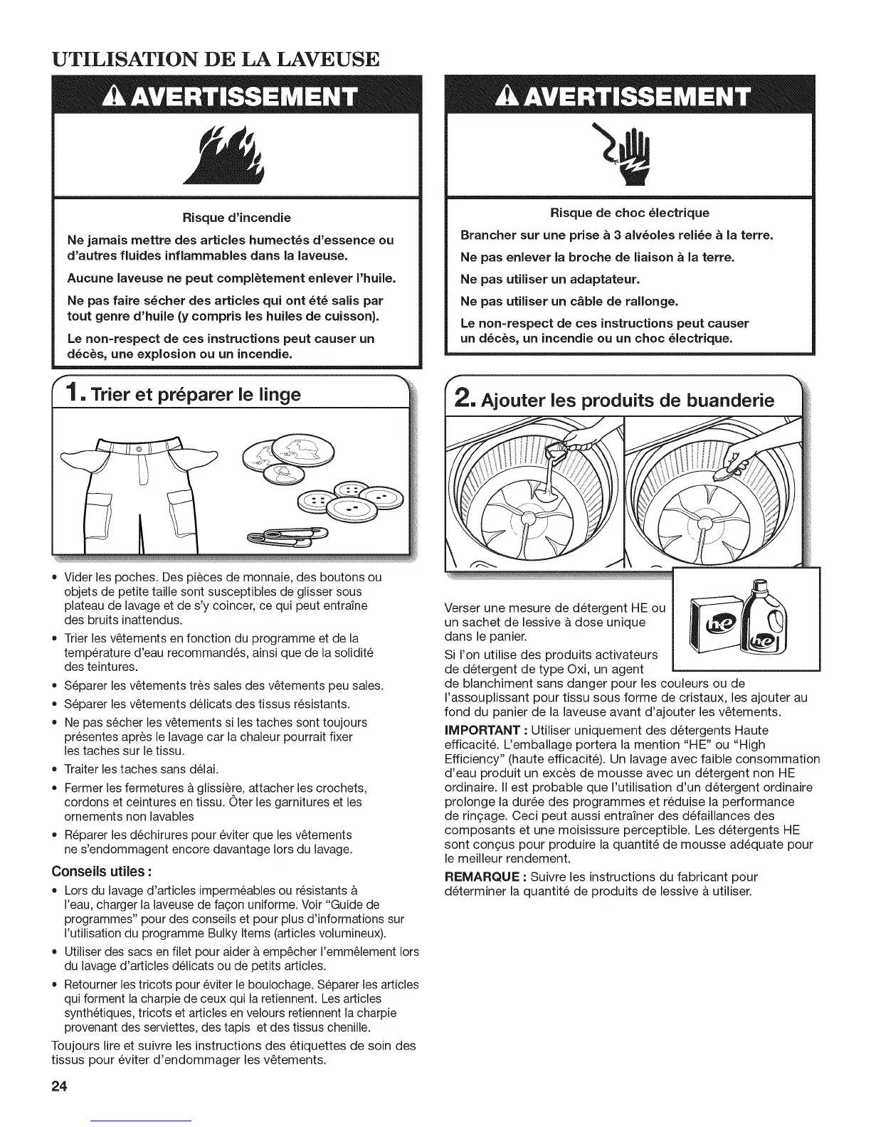 IMPORTANT : Utiliser uniquement des detergents Haute