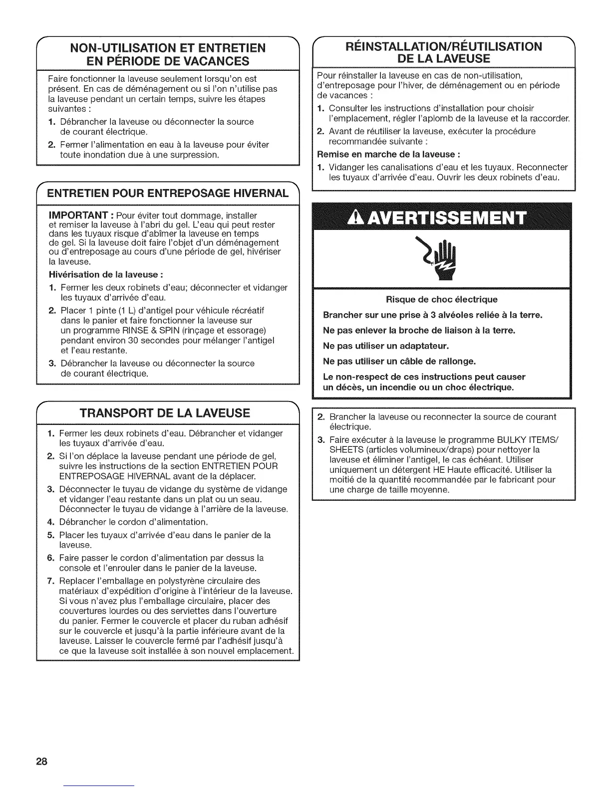 2. Avant de r6utiliser la laveuse, ex6cuter la proc6dure
