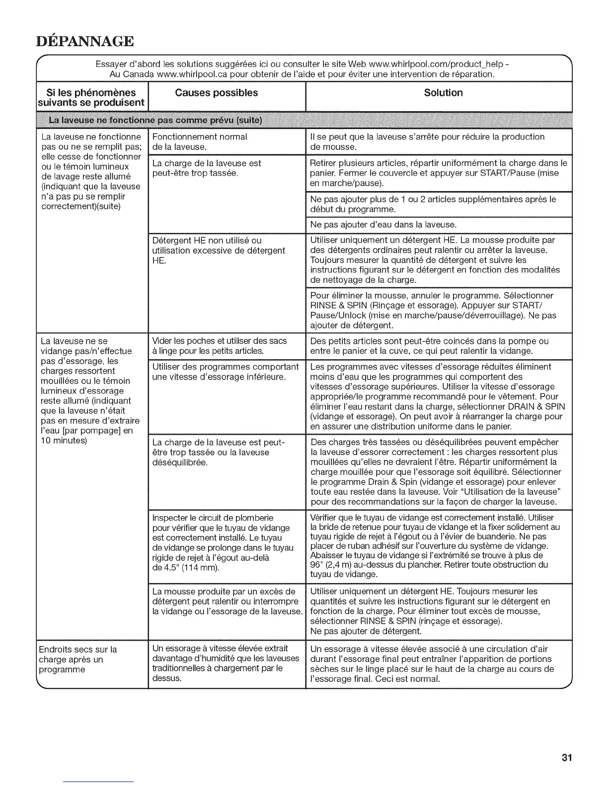 Essayer d'abord les solutions sugg6r6es ici ou consulter le site Web www.whirlpool.com/product_help -
