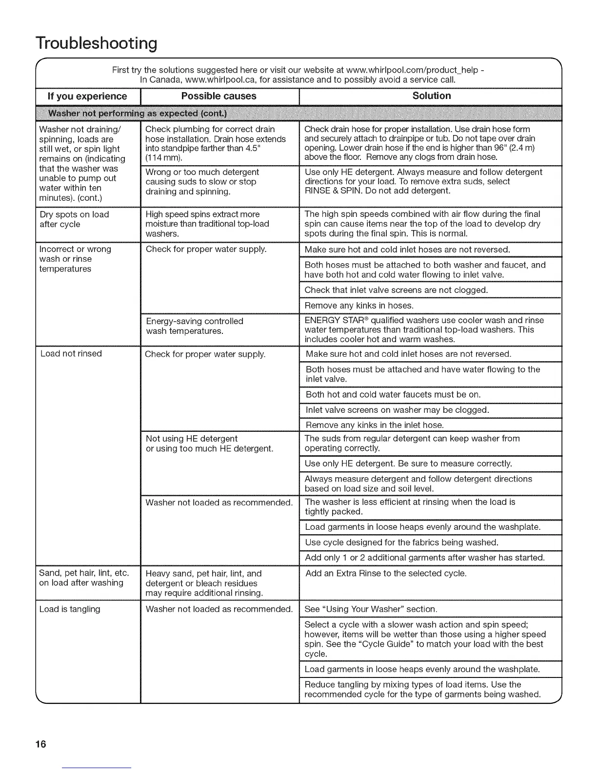 In Canada, www.whirlpool.ca, for assistance and to possibly avoid a service call.