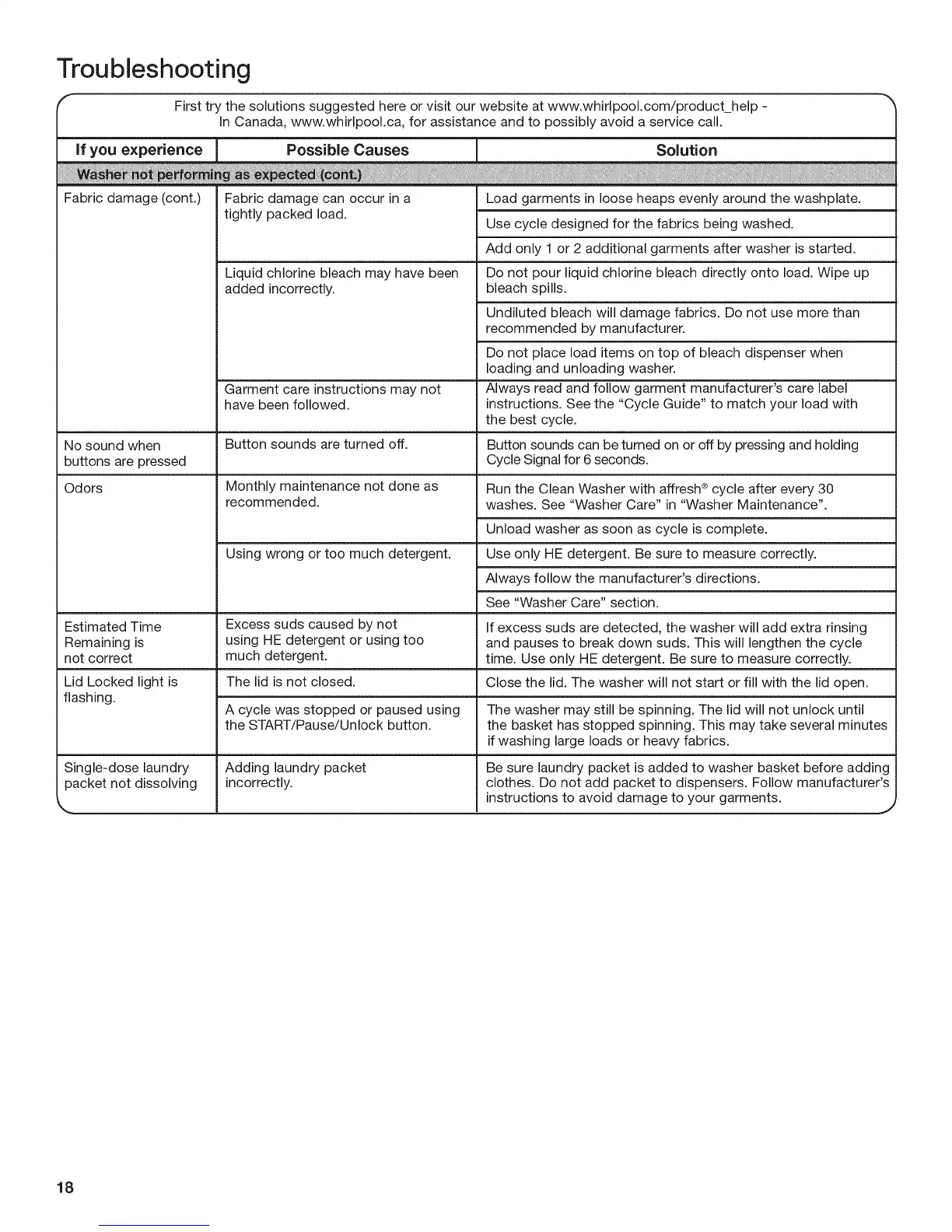 First try the solutions suggested here or visit our website at www.whirlpool.com/product_help -