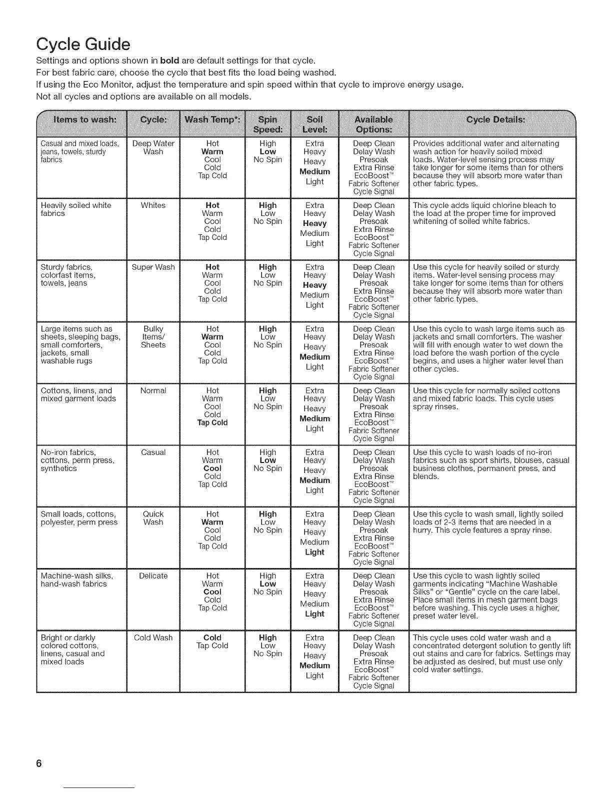 For best fabric care, choose the cycle that best fits the load being washed.