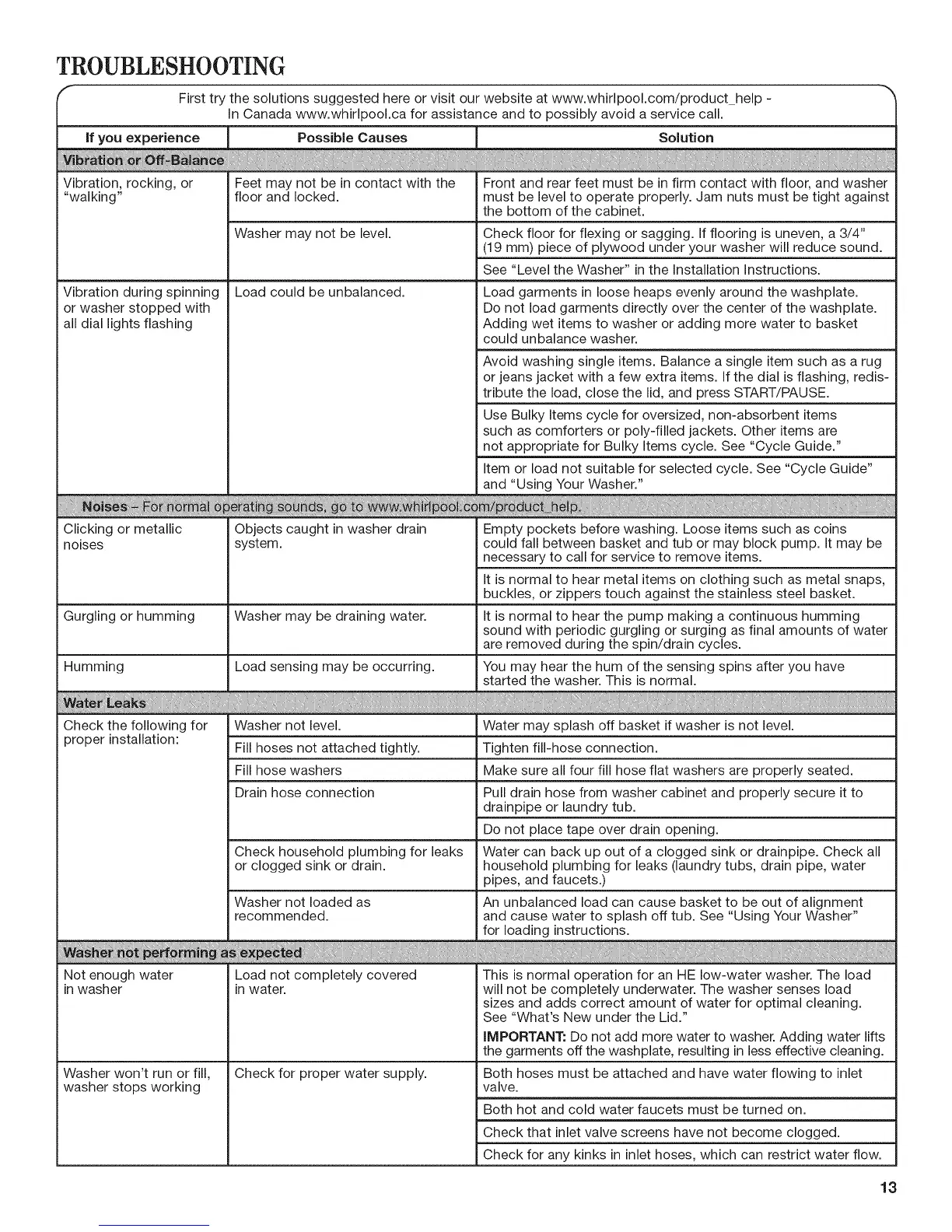 First try the solutions suggested here or visit our website at www.whirlpool.com/product_help -