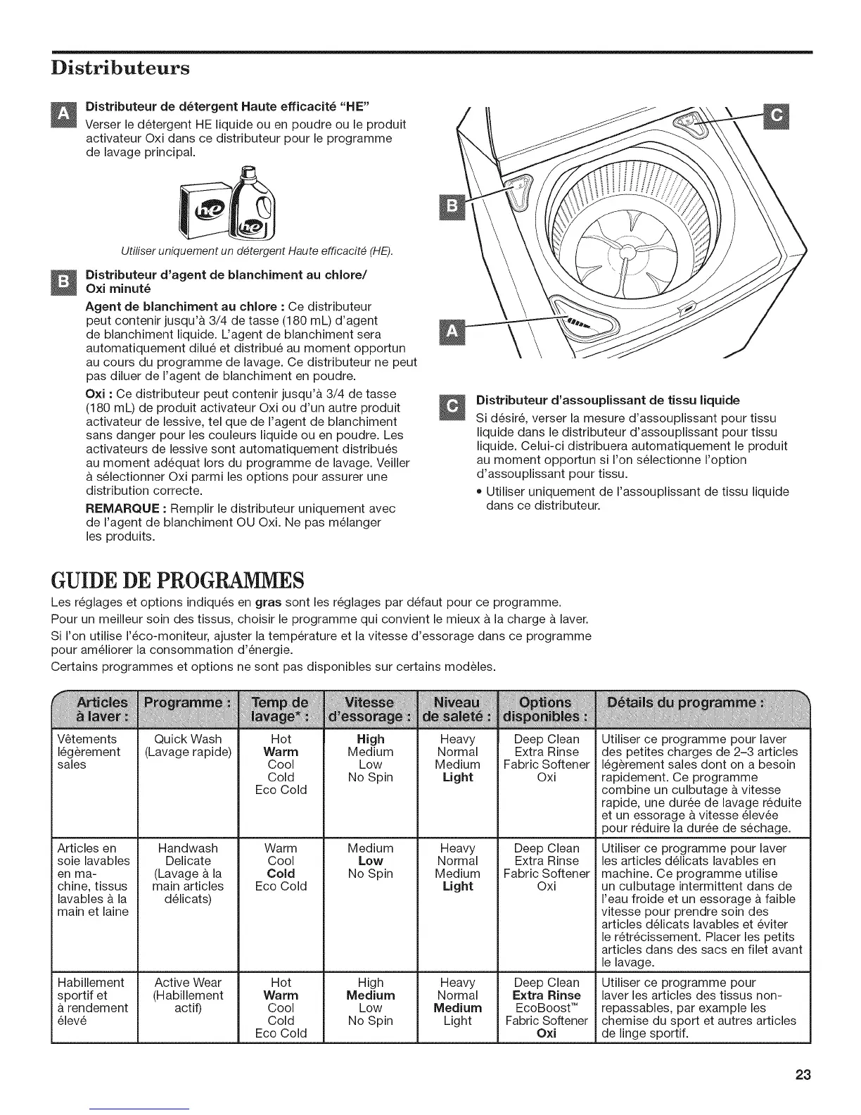 Distributeur de d6tergent Haute efficacit6 "HE"