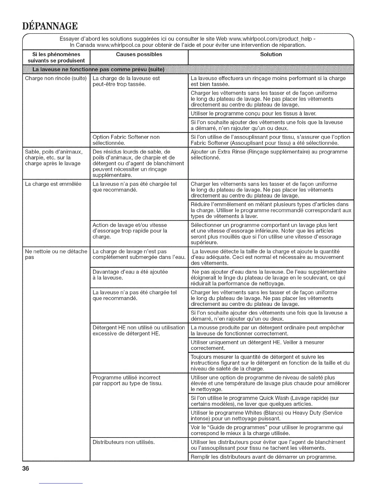 Essayer d'abord les solutions sugg6r6es ici ou consulter le site Web www.whirlpool.com/product help -