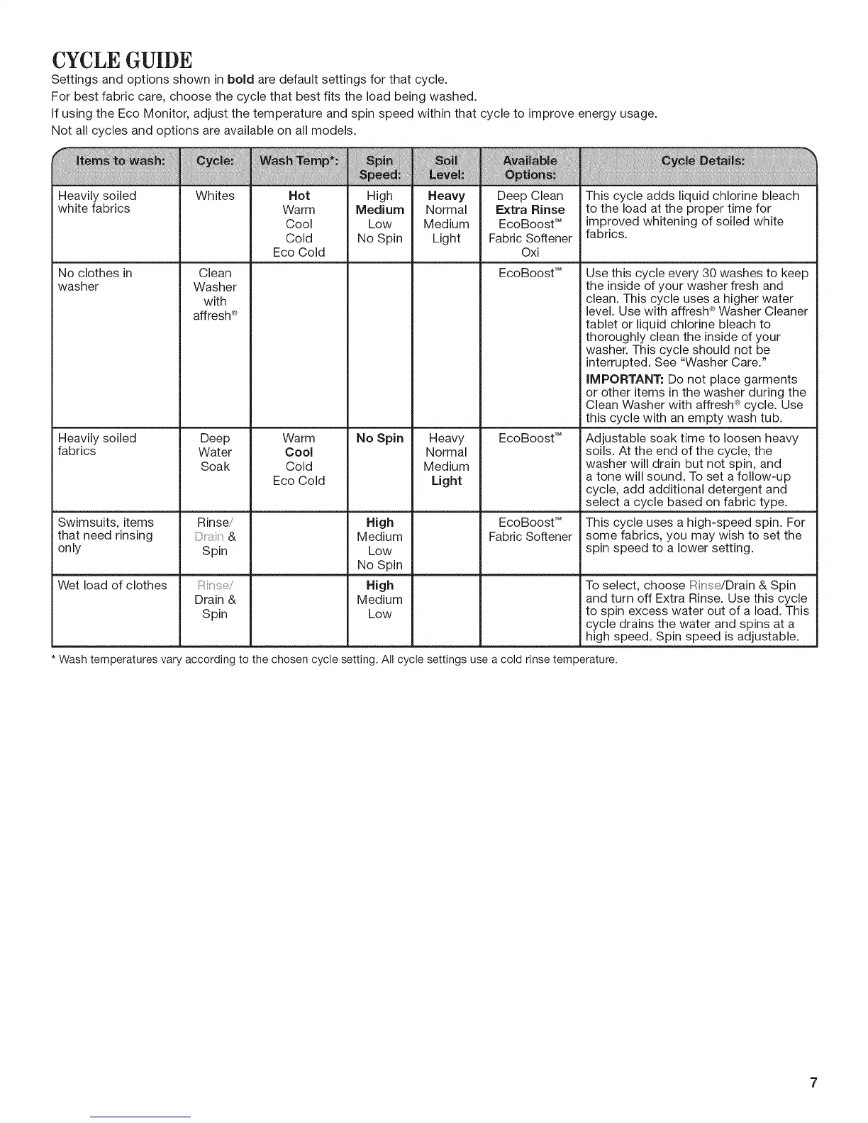 For best fabric care, choose the cycle that best fits the load being washed.