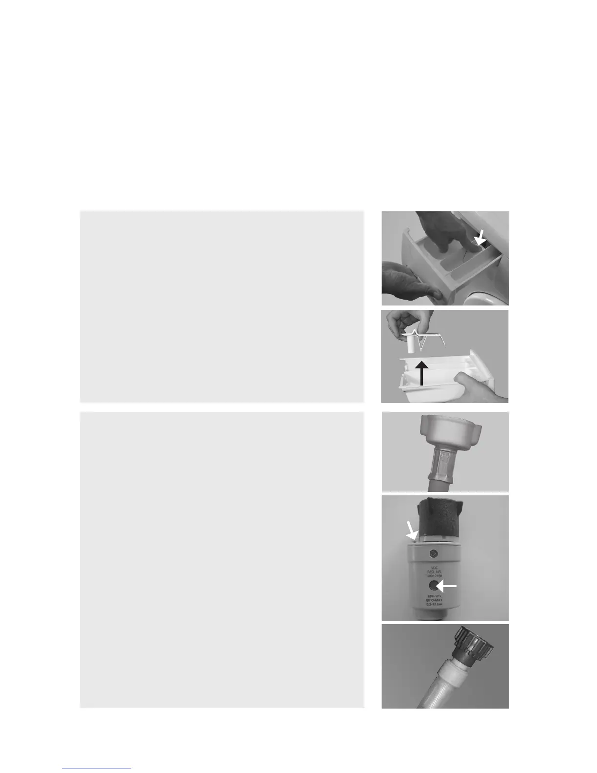 If your inlet hose has a transparent hose coating (pict. “E”), periodically