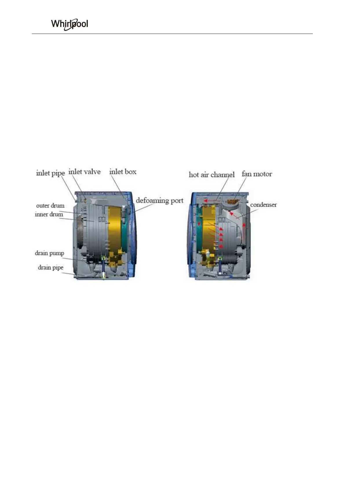 Water inflow: inlet pipe - → inlet valve - → inlet box - → outer drum