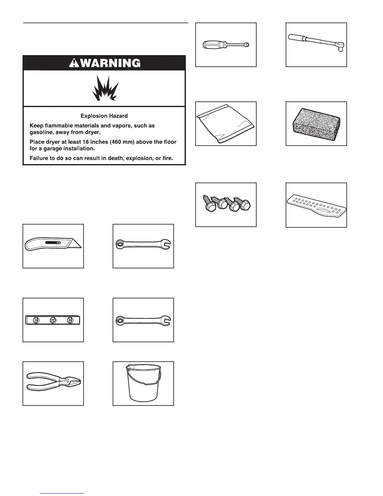 the washer/dryer is 18" (458 mm) above the garage oor.