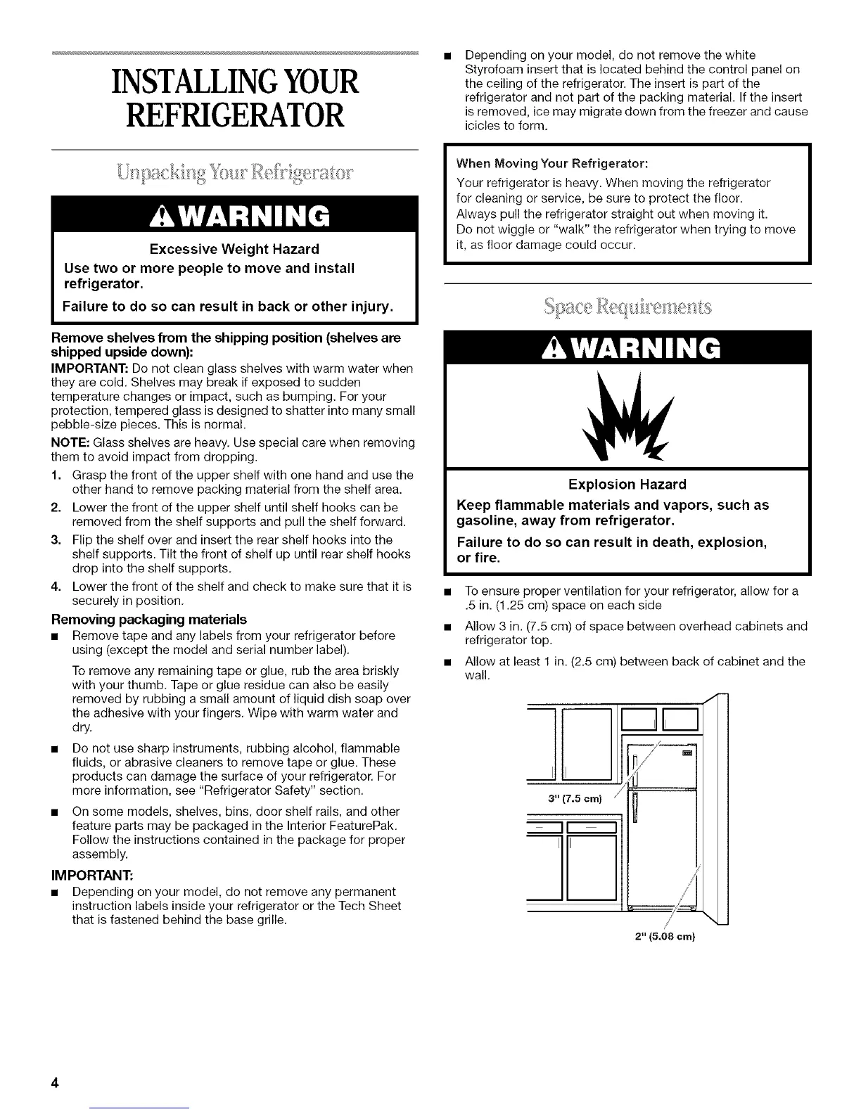 more information, see "Refrigerator Safety" section.