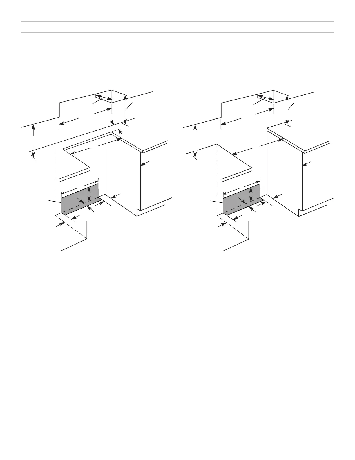 Les dimensions de l’ouverture entre les placards correspondent à une installation entre des placards de 25" (64,0 cm) de profondeur,