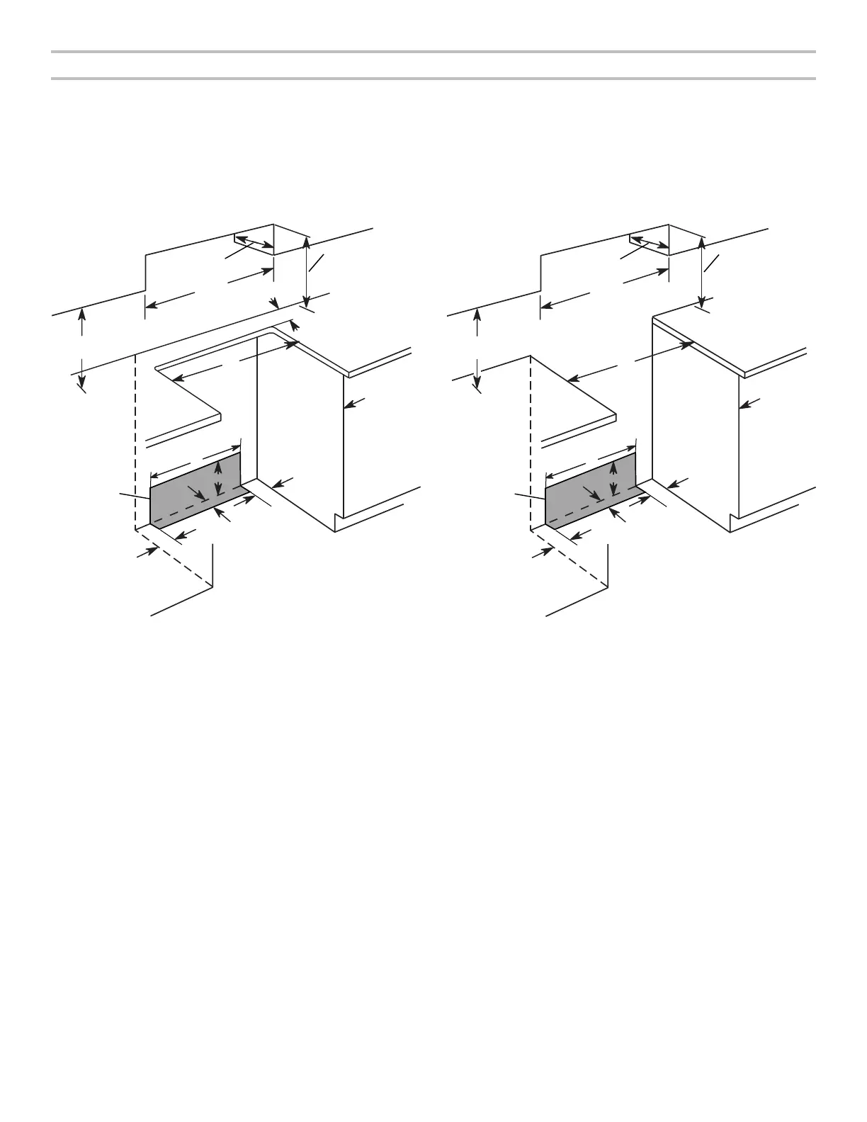 * NOTA: 24" (61,0 cm) como mínimo cuando la base del armario de madera o de metal esté protegida por madera moldeada re-
