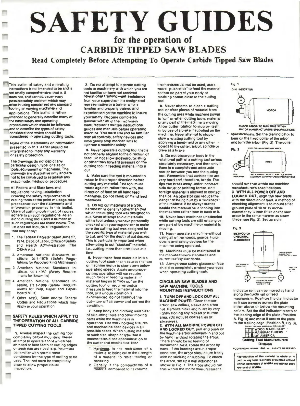 Read Completely Before Attempting To Operate Carbide Tipped Saw Blades